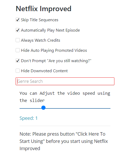 This google chrome extension helps to make the experience better when you are viewing Netflix videos by having cool features such as automatic play for next episodes.